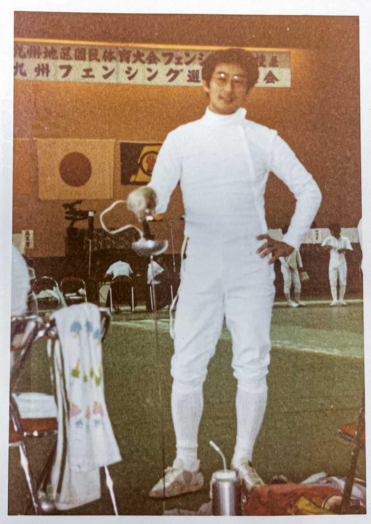 (下)九州フェンシング大会で優勝した時の1コマ。
