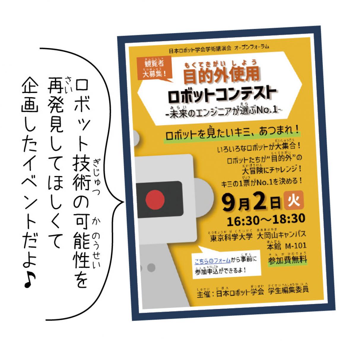 2025年9月2日~5日に開催された「第43回日本ロボット学会学術講演会(RSJ2025)」(一般社団法人日本ロボット学会主催)のオープンフォーラム「目的外使用ロボットコンテスト」に登場したロボットたちです。ロボットにはそれぞれ“与えられた仕事”がありますが、このコンテストでは、自分の“仕事”ではないミッションにロボットがチャレンジ! 頑張る姿を小中学生たちに見てもらいました。そして一番良かったと思うロボットに投票、「目的外使用ロボNo.1」を決定しました。その模様をレポートします。