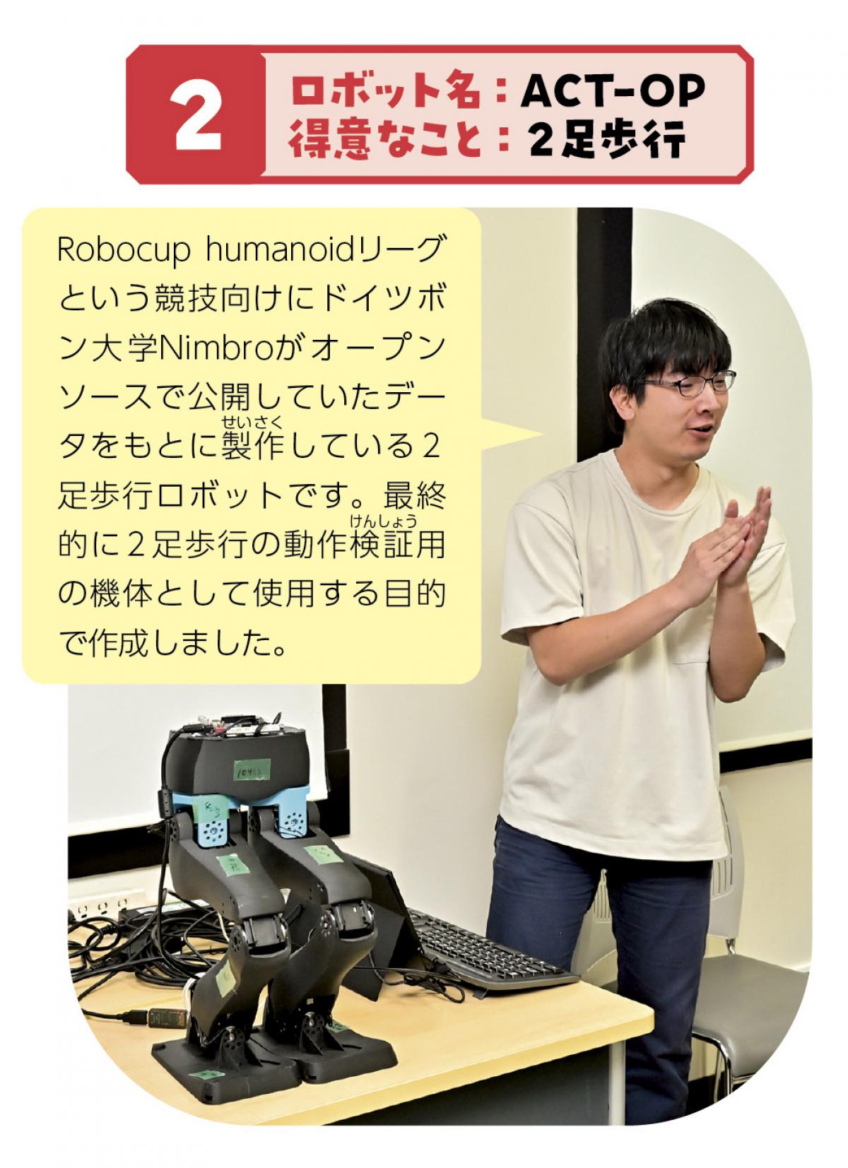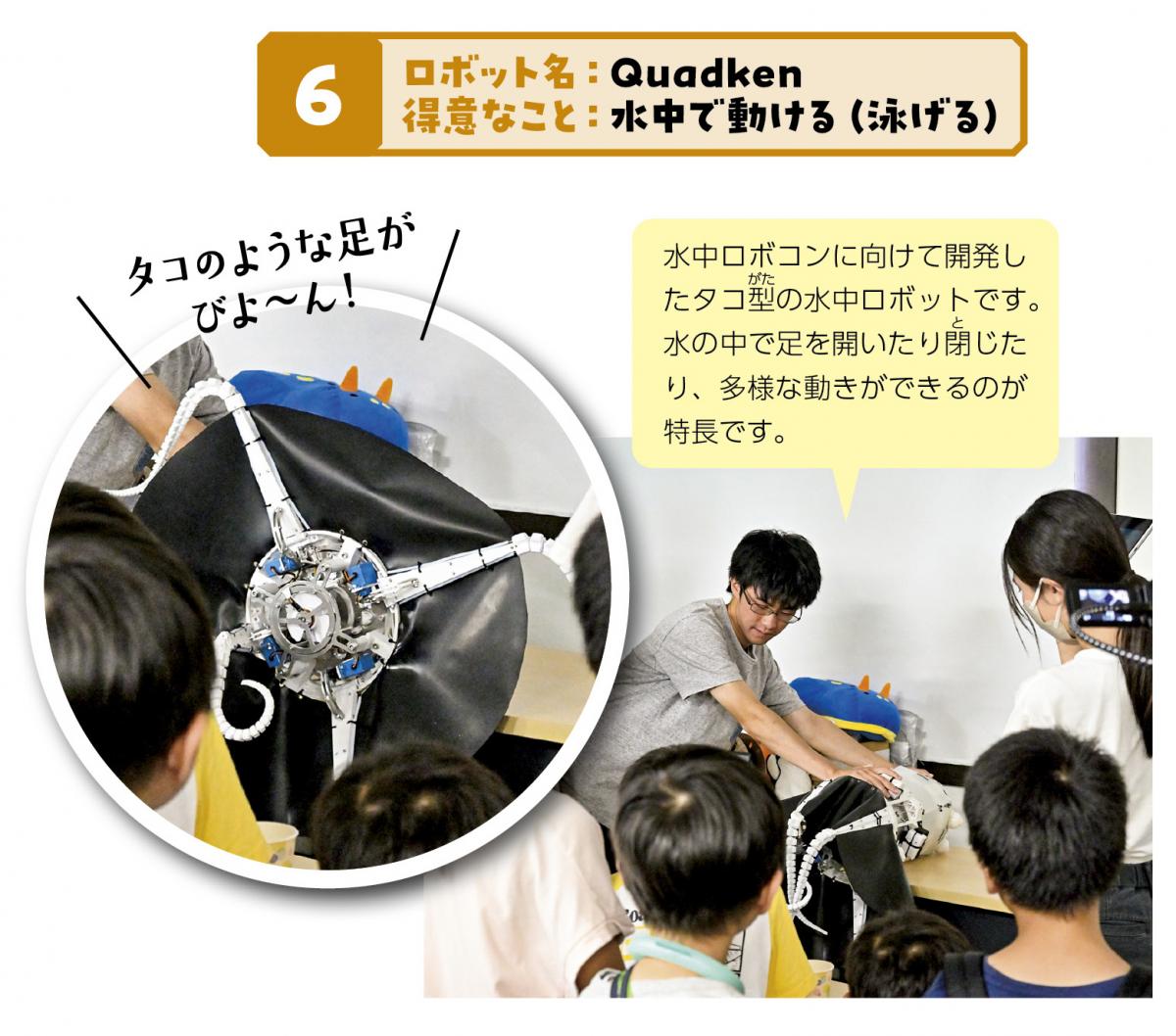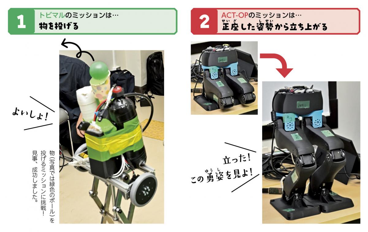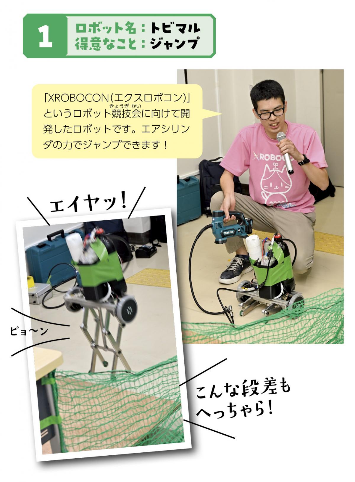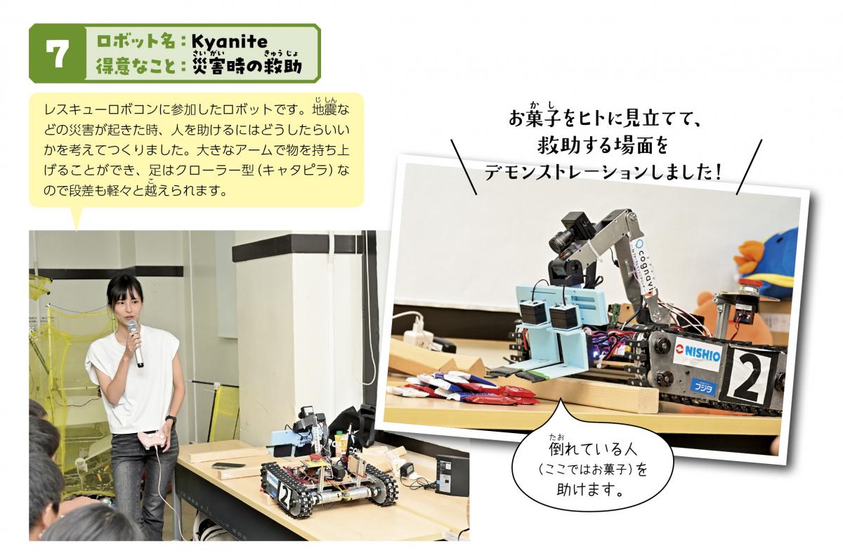 「目的外使用ロボットコンテスト」には、レスキューロボットや水中ロボット、食べられるロボットなど全部で8体が出場しました。まずはそれぞれの得意なことを紹介しましょう。